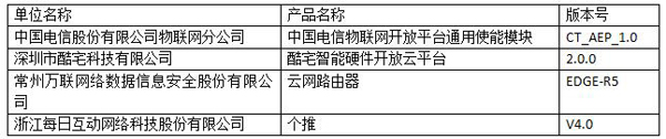 通過智能硬件(IOT)可信評(píng)估(第四批)以及移動(dòng)信息化可信選型評(píng)估(第五批)名單