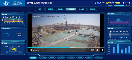 據(jù)了解,本次發(fā)布的“智慧工地2.0”項目依托中國移動5G技術和云平臺,搭建工地專業(yè)設備如塔機、吊鉤、起降機、卸料、揚塵降塵等的專用監(jiān)控系統(tǒng),整合了全景應用、BIM應用、人員管理、綠色工地、智能設備、智能巡更等一系列智慧應用。其中,在5G+BIM應用方面,可進行無人機航拍實時跟蹤工地施工狀況,通過5G網絡上傳到移動云上的綜合管理平臺,應用數(shù)字建造技術來避免施工誤差。而5G+遠程管理,則可以實現(xiàn)管理者隨時隨地利用5G網絡通過微信小程序和公眾號等平臺實時查看工地現(xiàn)場和環(huán)境指數(shù),甚至可以通過5G遠程控制工地設施,例如通過5G遠程控制開啟霧炮噴淋系統(tǒng)降低現(xiàn)場揚塵。5G+智能識別系統(tǒng)還能通過智能識別幫助管理者提高管理效率,如5G智能火情識別,可以發(fā)現(xiàn)火情自動報警,安全帽識別,可以及時督促施工人員佩戴安全帽。