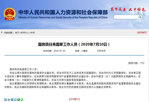 飛象網(wǎng)訊(致新/文)7月10日消息,記者從人社部網(wǎng)站獲悉,國(guó)務(wù)院7月10日任免國(guó)家工作人員,任命劉烈宏為工業(yè)和信息化部副部長(zhǎng),免去劉烈宏的國(guó)家互聯(lián)網(wǎng)信息辦公室副主任職務(wù)。