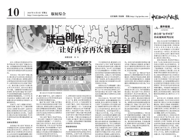 11月5日,《中國知識產權報》同時刊登《聯合創作:讓好內容再次被看到》《擅自將“知乎回答”拍成視頻被判侵權》兩篇報道文章,就問答社區和原創內容平臺知乎近期推出的“聯合創作”功能表示關注。