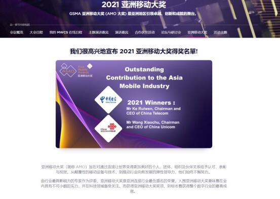 飛象網(wǎng)訊 2021年2月24日,全球移動通信系統(tǒng)協(xié)會(簡稱GSMA)在MWC21上海頒布了2021亞洲移動大獎(簡稱 AMO),中國聯(lián)通董事長王曉初、中國電信董事長柯瑞文共同獲得了亞洲移動行業(yè)卓越貢獻獎,表彰他們推動中國聯(lián)通和中國電信建成全球規(guī)模最大的5G SA共建共享商用網(wǎng)絡的卓越領(lǐng)導力,以及推動全球5G產(chǎn)業(yè)發(fā)展做出的巨大貢獻。