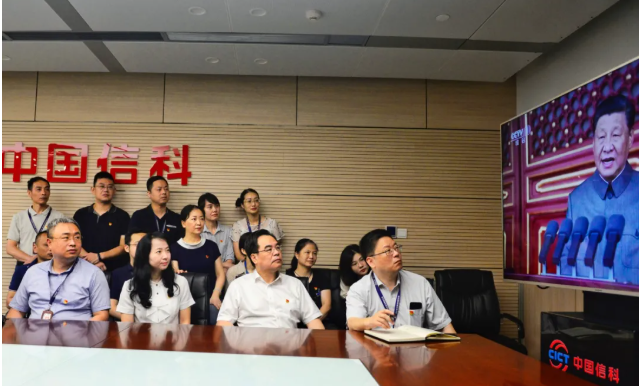 7月1日,慶祝中國共產黨成立100周年大會在北京天安門廣場隆重舉行,中共中央總書記、國家主席、中央軍委主席習近平出席大會并發表重要講話。中國信科集團廣大黨員干部職工通過多種方式收聽收看大會盛況,熱議習近平總書記重要講話,暢談感想,共話未來。