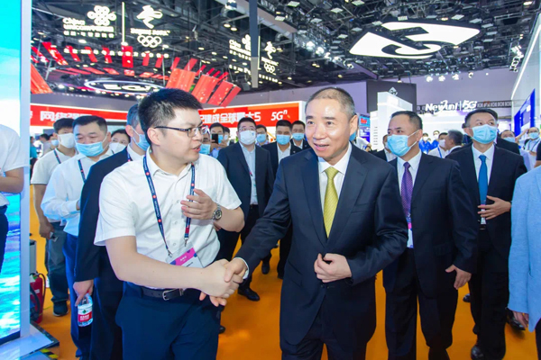 9月27日, 2021年中國國際信息通信展(PT展)在北京國家會議中心拉開帷幕,工信部副部長辛國斌視察亨通展臺,亨通集團副總裁崔巍、副總裁龐勝清介紹了亨通在5G建設、千兆光網建設以及數字化轉型方面的積極探索。辛國斌對亨通圍繞國家“雙千兆”網絡協同發展計劃提供的5G及F5G全光網絡底座全系列方案給予高度肯定,對旗下華海通信全球首發的32纖對海底光通信中繼器原型機的產品實力及全球跨洋通信工程交付能力表示贊嘆。