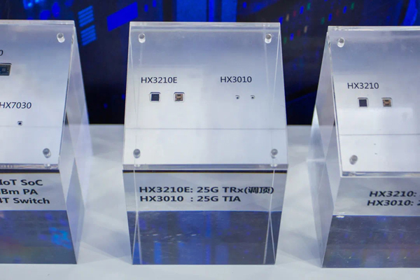 針對5G前傳中的調頂方案光模塊推出了自己的芯片方案。在展臺現場看到的HX3210E是業內首個支持調頂功能的單芯片方案,服務5G前傳中的調頂方案。它擁有TRx雙工設計,芯片內集成LA+LDD和CDR,支持三大運營商的調頂標準,也支持定制化調頂,任意包長,提高效率等優勢。該產品配套軟已經完成開發,可以提供一整套的軟硬件解決方案。