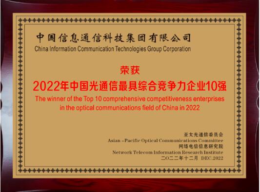 1、中國信科榮登《2022年中國光通信最具綜合競爭力企業(yè)10強》榜首和《2022年中國光通信市場最具品牌競爭力企業(yè)10強》。