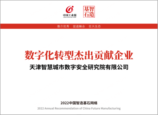近日,“2022中國智造基石名單”正式發布,天津智慧城市數字安全研究院(以下簡稱研究院)上榜“數字化轉型杰出貢獻企業”。
