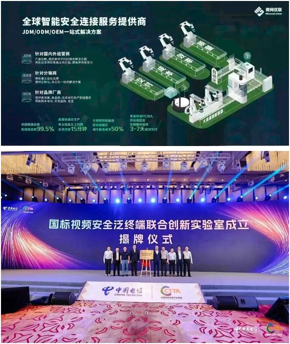 微網優聯是一家集產品設計、研發、生產、營銷、服務于一體的全球智能安全連接服務商,以效率、成本、交付、質量、大規模自動化制造方面的優勢,形成了高良品率、快速出貨、低成本與高效交付的能力,持續為國內外運營商、分銷商、品牌廠商客戶提供靈活的JDM/ODM/OEM一站式解決方案。作為中國電信重要生態合作伙伴,本次大會微網優聯受邀參加2023中國電信終端生態合作暨中國電信終端產業聯盟第十四次會員大會,中國電信政企信息服務事業群、天翼終端有限公司、微網優聯及產業相關上下游合作伙伴領導等共同出席“國標視頻安全泛終端聯合創新實驗室”揭牌儀式,標志著微網優聯與中國電信的全面合作得以進一步深化,拉開了嶄新的篇章。