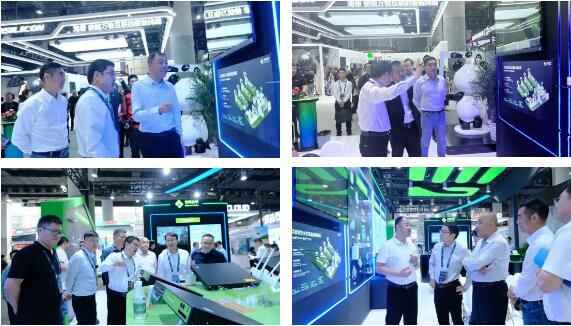 圖|中國電信集團產品中心總經理陸良軍,廣東電信總經理崔占偉、安徽電信副總經理章峻青及黑龍江電信副總經理李磊等各省電信領導蒞臨展臺考察指導