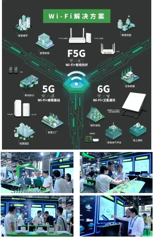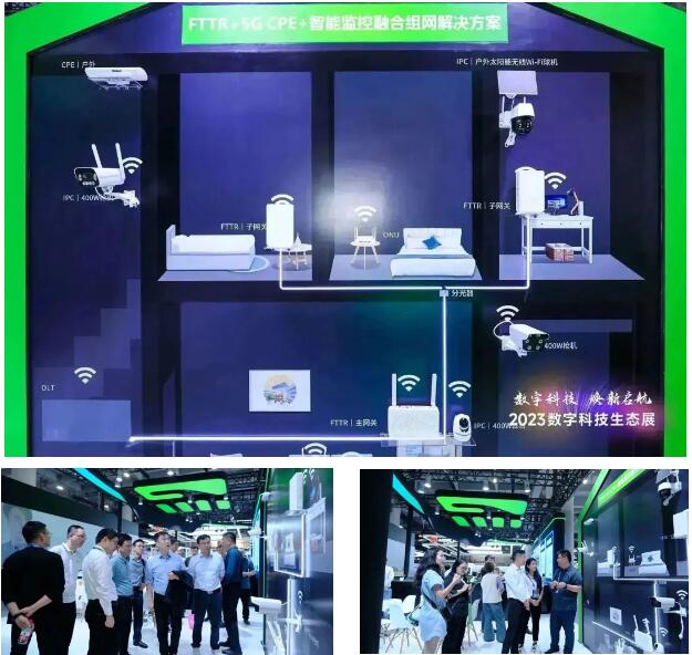 微網優聯積極推進家庭光纖化,全方位打造了面向未來的光接入網,推出FTTR+5G CPE +智能監控融合組網解決方案,可廣泛運用于住宅、商業樓宇、辦公樓宇、中小企業及校園等場景,讓全屋暢享千兆網絡體驗。在此方案展示區,全屋千兆覆蓋、全屋Wi-Fi無縫漫游、入戶安防、居家監測等多種智慧產品被展出,包括戶外CPE、FTTR子網關、IPC槍機、IPC戶外太陽能無線Wi-Fi球機、IPC云臺等,實現居家與辦公場景下網絡時延降低與連接能力大幅提升,為用戶帶來數字化生活辦公新體驗。
