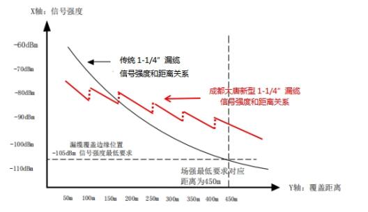 產品綜合損耗性能優異,場強輻射均勻穩定;傳統的1-1/4”漏纜隧道內有效覆蓋距離為350-400m,而1-1/4”新型漏纜可以延伸至600米,能有效滿足運營商移動通信5G頻段的長距離通信需求。