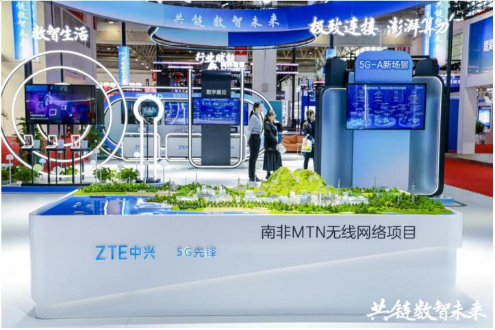 中興通訊致力于推動數字經濟與實體經濟融合,助力數字經濟高質量發展。通過實景沙盤展示了中興通訊在南非MTN的商用網絡案例,呈現了在南非推動數字智能技術應用和發展的實踐。中興通訊的數字化轉型項目已在15個行業發展超過1000家合作伙伴,在中國、泰國、奧地利、比利時、印尼、西班牙、南非等國家開展行業創新應用項目,助力千行百業數字化轉型。