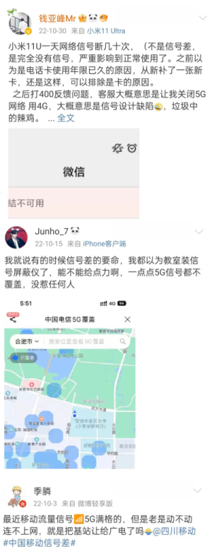 根據此前中國電信研究院發布的5G用戶用網感知質量測評報告,我國5G網絡信號覆蓋存在室外、室內覆蓋不均的情況。