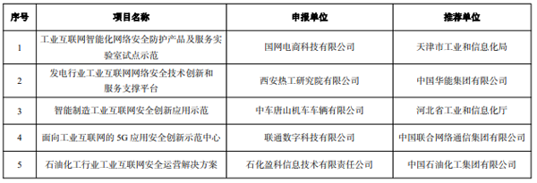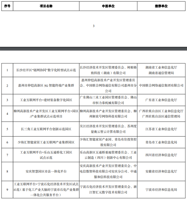 2022 年工業互聯網試點示范公示名單