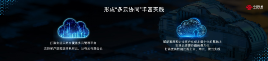 五是形成“多云協同”的豐富實踐。積極構建多云合作生態,打造主流云商全覆蓋的多云管理平臺,實現多云資源的快速供給和統一運營,更好支持客戶按需選擇私有云、公有云與混合云。結合自身數字化轉型過程積累的多云運營經驗,幫助政府和企業客戶在成本最小化的基礎上,實現云資源價值的最大化,打造了更具性價比的上云、用云、管云實踐。