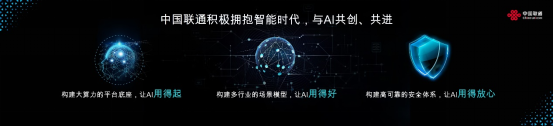 劉烈宏表示,中國聯通積極擁抱智能時代,著力推動人工智能產業的發展、拓展人工智能的想象空間,將從以下三個方面與人工智能共創、共進。