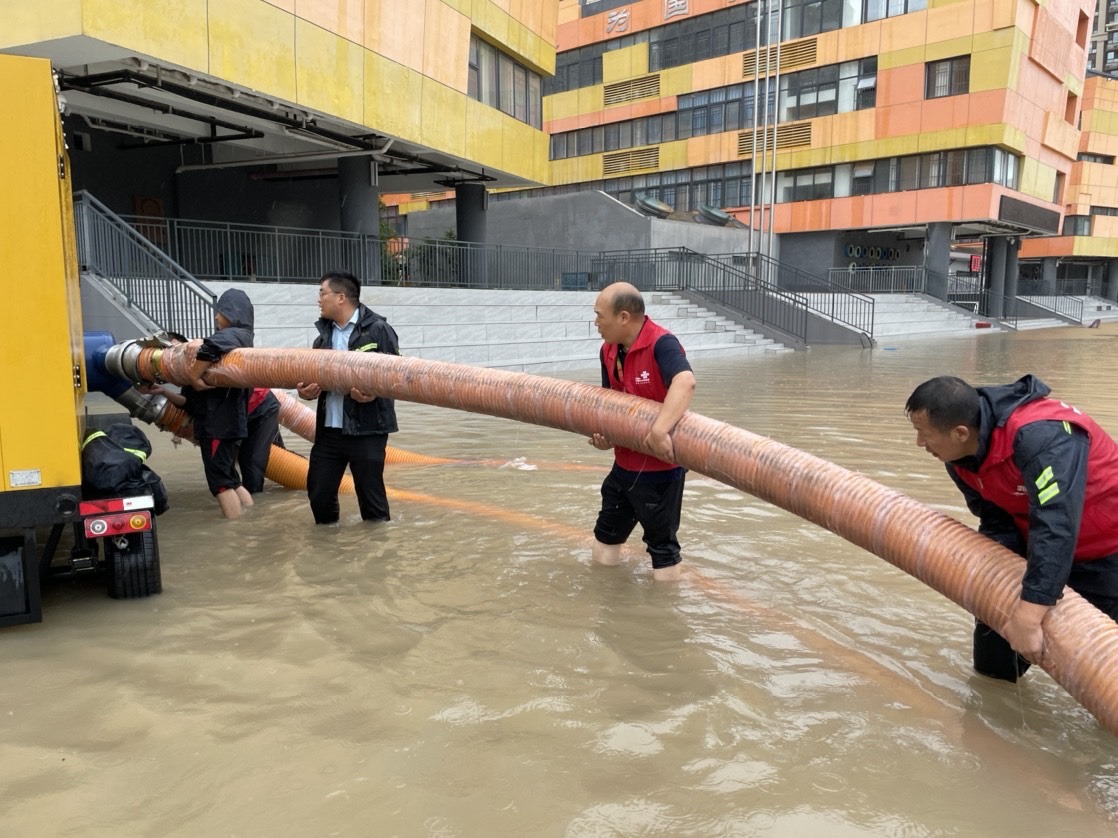 河南聯通出動“龍吸水”幫助高新區創新大道小學清理積水