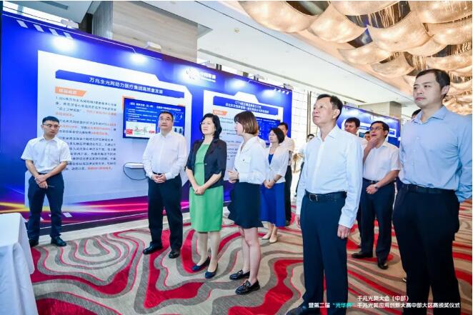 8月16日,千兆光網大會(中部)暨第二屆“光華杯”千兆光網應用創新大賽中部大區賽頒獎活動在武漢舉辦。工業和信息化部信息通信科技委常務副主任兼秘書長韓夏、湖北省政府副秘書長趙俊、中國信息通信研究院總工程師敖立為活動致辭。湖北省經濟和信息化廳黨組成員、副廳長呂曉華,湖北省網絡安全和信息化委員會辦公室二級巡視員唐兵,湖北省發展和改革委員會二級巡視員徐澤倫,山西省通信管理局黨組成員、副局長劉紅雨,安徽省通信管理局黨組成員、副局長李慶坤,湖北省通信管理局黨組成員、副局長梁長島,以及湖北電信、湖北移動、湖北聯通、湖北廣電、湖北鐵塔等企業有關負責人出席了本次活動。烽火通信總裁藍海應邀參會,湖北省通信管理局黨組書記、局長吳俊主持會議。