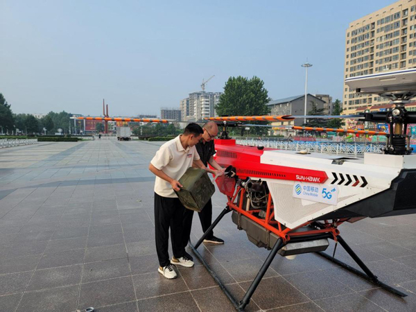 為有效保障涿州區域網絡通信暢通,8月2日夜,在工業和信息化部、應急管理部統籌指揮調度下,中國移動緊急調撥空天應急通信系統到達保定涿州,在經過現場數據配置和系統調測后,8月3日早7時,空天應急通信系統順利啟用,無人機正式起飛搶險。