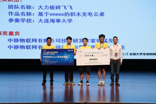 近日,由全國高等學(xué)校計算機(jī)教育研究會(以下簡稱“高等教育學(xué)會”)主辦的2023年全國大學(xué)生物聯(lián)網(wǎng)設(shè)計競賽總決賽在南京大學(xué)成功舉辦,OneOS賽道多支隊伍獲佳績。中移物聯(lián)網(wǎng)有限公司(以下簡稱“中移物聯(lián)”)作為大賽長期合作伙伴,已連續(xù)3年以O(shè)neOS物聯(lián)網(wǎng)操作系統(tǒng)作為主題合作賽道,參與大賽出題和評審工作。今年,OneOS賽道共計報名158支隊伍,為歷年之最。其中,11支隊伍進(jìn)入全國總決賽,最終有3支隊伍榮獲全國一等獎,大連海事大學(xué)“基于OneOS的積木充電云桌”榮獲中國移動OneOS特別創(chuàng)新獎。