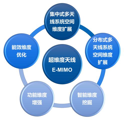 研討會上,中信科移動聯合無線移動通信全國重點實驗室(中國信科)及北京大學發布了《超維度天線(E-MIMO)技術白皮書》。白皮書結合近年來多天線技術理論與相關支撐技術的發展情況,以及未來移動通信系統與業務需求的發展趨勢,對多天線技術的總體演進動向進行了分析并論述了超維度天線(Extreme Multiple Input Multiple Output,E-MIMO)的概念與內涵。