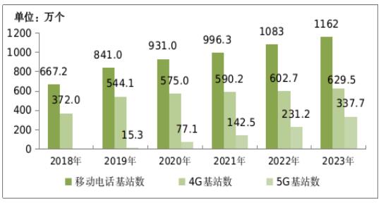 其次,截至2023年底,全國移動通信基站總數達1162萬個,其中5G基站為337.7萬個,占移動基站總數的29.1%,占比較上年末提升7.8%。