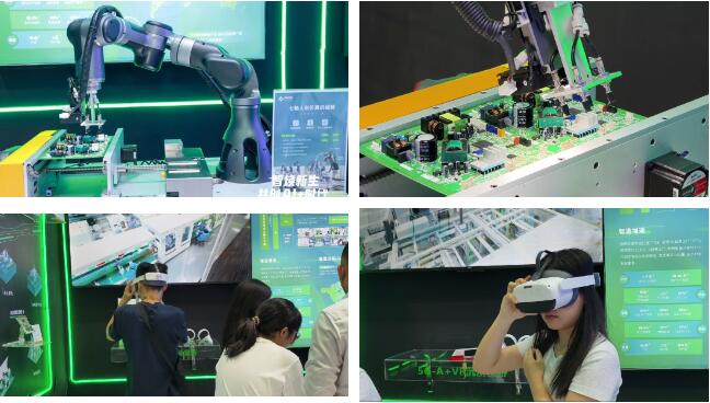 其中,微網優聯自主研發設計的七軸人形仿真機械臂成為了展位焦點。"快來和我打個招呼吧!"精彩有趣的程序充分展現了機械臂的靈活、精準。更有5G-A+VR沉浸漫游遠在成都的智慧工廠,實時體驗工廠內高度自動化、智能化的生產場景。其領先的大規模制造能力和數智化水平給現場嘉賓留下了深刻印象。