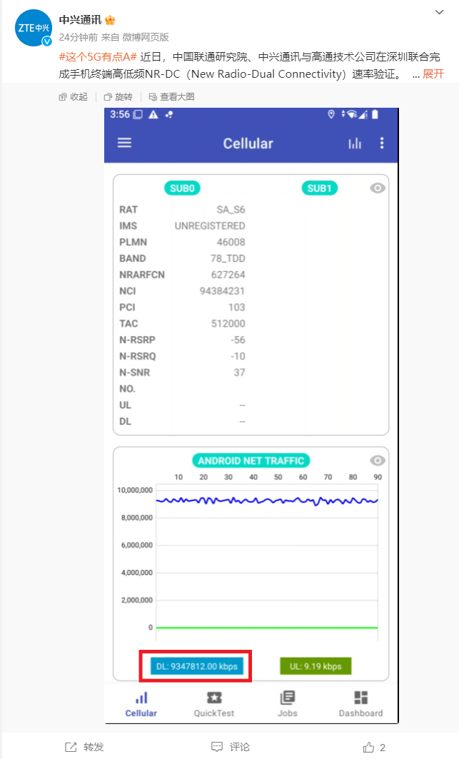 10 月 15 日消息,中國聯(lián)通研究院、中興通訊與高通技術(shù)公司宣布近日在深圳聯(lián)合完成手機終端高低頻 NR-DC(New Radio-Dual Connectivity)速率驗證。