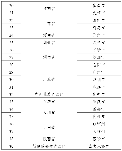 名單包括,石家莊市、雄安新區、浦東新區、南京市、蘇州市、杭州市、廣州市、深圳市等39個城市。