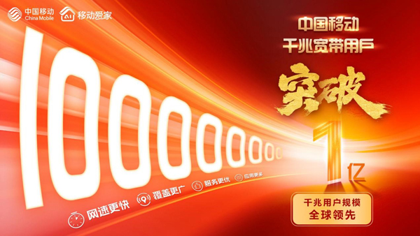 飛象網訊 近日,中國移動千兆寬帶用戶突破1億,這是繼2024年2月中國移動寬帶用戶破3億后的又一重要里程碑。從ADSL撥號上網,到千兆引領、萬兆光網啟航,中國移動已成為全球家庭市場的領頭羊。
