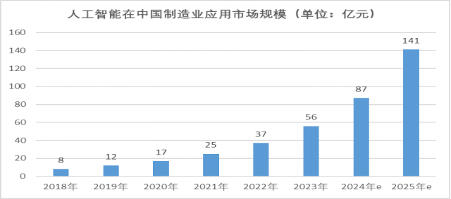 人工智能在中國制造業(yè)應(yīng)用市場規(guī)模逐年增加,但是目前總量不高。根據(jù)德勤數(shù)據(jù),2023年人工智能在中國制造業(yè)應(yīng)用市場規(guī)模總量僅為56億元。 根據(jù)頭豹研究院數(shù)據(jù),2022年中國人工智能行業(yè)市場規(guī)模為3,716億元,預(yù)計2027年將達15,372億元。與此相比,制造行業(yè)人工智能應(yīng)用市場規(guī)模目前總量不高。