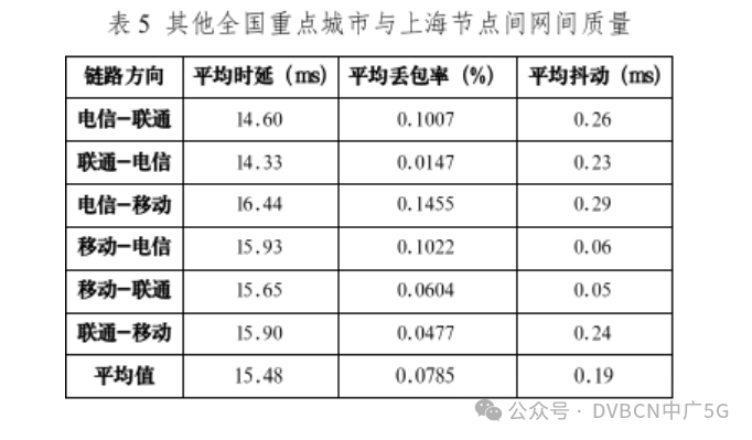 在網間性能質量方面,京津冀、長三角、粵港澳、成渝、貴州全國其它樞紐的重點城市訪問上海節點的網間平均時延為14.77ms,平均丟包率為0.1347%,平均抖動為0.19ms。分鏈路方向來看,電信到聯通方向性能最優,時延為13.99ms,丟包率為0.3460%;移動到聯通方向性能相對較差。