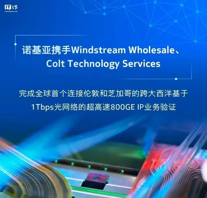 11 月 12 日消息,諾基亞、Windstream Wholesale(WW)和 Colt Technology Services(Colt)今日宣布成功完成全球首個跨度為 8500 公里、覆蓋海底和陸地商用光纜的 800GE 業(yè)務驗證。