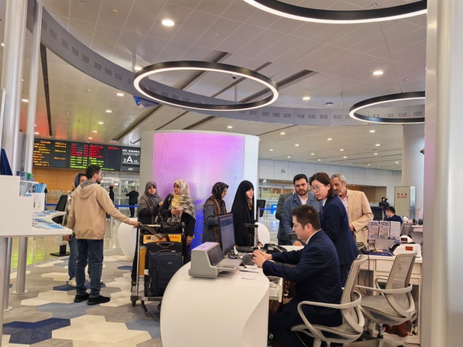 展館外,浦東機場T2航站樓電信服務點更是24小時不間斷提供服務。展會前夕,來自伊朗的代表團剛下飛機,就在電信服務點得到了關于游玩和citywalk的推薦,電信服務人員還為他們提供了“進博會交通出行十問十答”雙語資料。伊朗代表團表示一落地就從電信服務點感受到了上海這座城市的熱情和魅力,特地手寫了一封感謝信表示感謝。