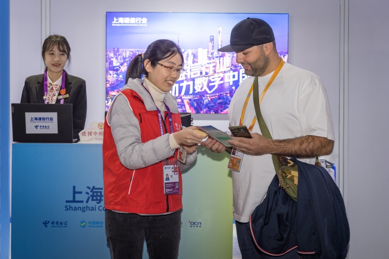 上海電信“小芳進博團隊”從首屆進博會至今,連續七年參加了通信服務保障工作。在場館內的電信服務站點,為用戶提供辦套餐、補換卡,試用助老一鍵通、助老一卡通設備、智慧血壓計等服務,展會期間共接待包括海外友人在內的超400位客戶。一位委內瑞拉參展商到服務點辦理短期卡,服務人員在交談時了解到客戶想去迪斯尼游玩,熱心地進行了介紹和指引,外國友人對電信的服務感到非常滿意,當場又帶了三位朋友辦理了電信短期卡。
