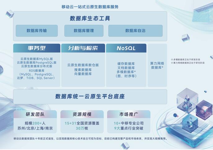 移動(dòng)云圍繞“云原生+全場(chǎng)景+自主可控”這一核心定位打造一站式產(chǎn)品家族,具備事務(wù)型、分析與檢索型、NoSQL等多種類型的數(shù)據(jù)庫(kù)服務(wù)能力。同時(shí),針對(duì)算網(wǎng)融合發(fā)展趨勢(shì),移動(dòng)云還啟動(dòng)了新一代算力網(wǎng)絡(luò)數(shù)據(jù)庫(kù)的規(guī)劃設(shè)計(jì)。