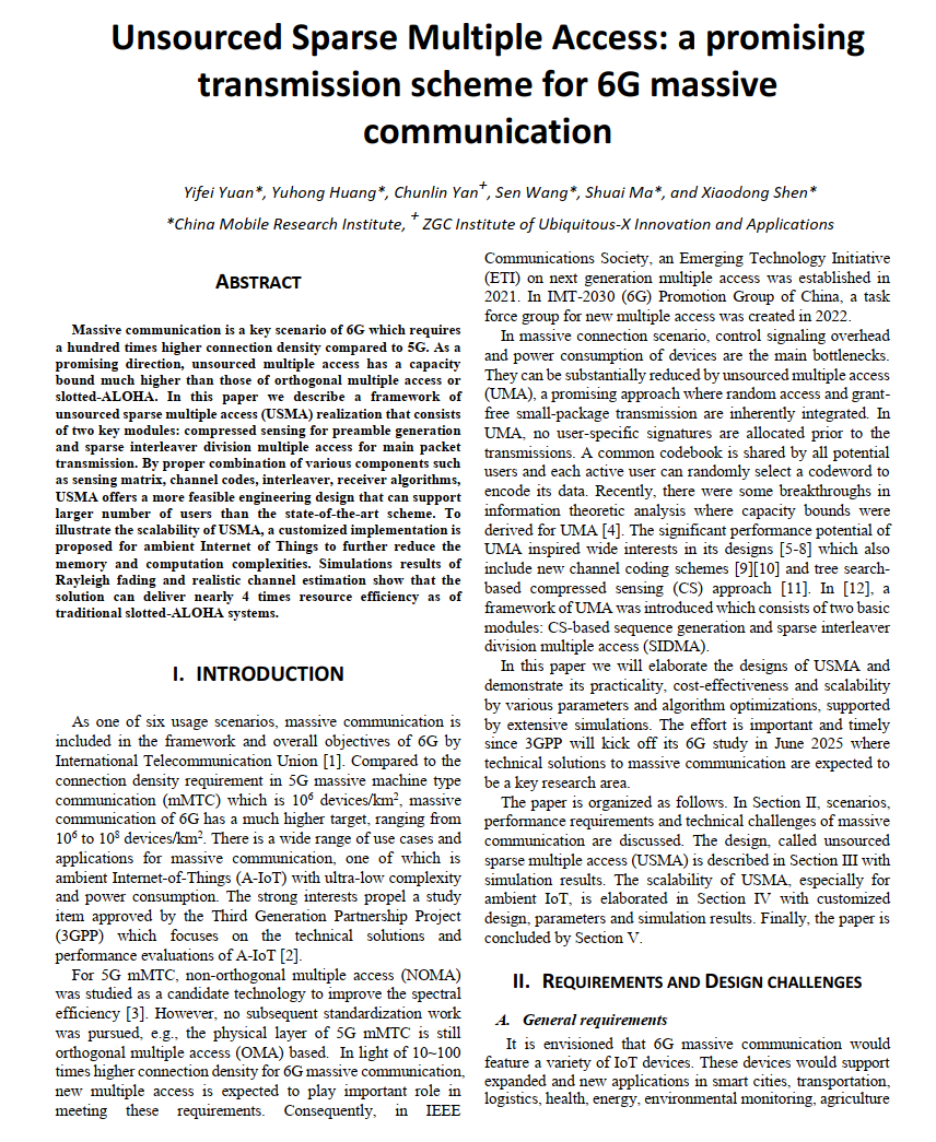 IT之家查詢獲悉,中國移動研究院 6G 無源稀疏多址接入論文“Unsourced Sparse Multiple Access: a promising transmission scheme for 6G massive communication”被通信領域國際頂級期刊 IEEE Communications Magazine 錄用,影響因子為 8.3。