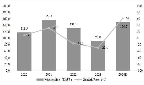 2020-2024年全球存儲器市場規模及增速