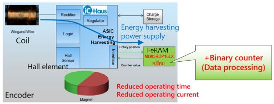在歐洲和德國,編碼器技術發展迅速,德國的iC-House、SEW、Fraba等,日本的尼康、三菱電機、多摩川精機等都是旋轉編碼器的著名供應商,他們也都在都在積極的研發相關產品。“傳統的磁式編碼器通常配備有電池,但在歐洲,帶有電池的產品無法通過航空運輸,只能選擇海運,并且電池的管理極為嚴格。鑒于此,業界正在尋求去除電池的方法,因為電池在其使用壽命期間需要更換,這不僅增加了維護成本,對于位于偏遠地區的公司而言,更換電池還意味著高昂的人工費用。因此,未來旋轉編碼器需要實現無源(無電池),帶有二進制計數器FeRAM是目前無二的選擇。”馮逸新介紹說,最近幾年,中國臺灣的臺達以及中國大陸做編碼器的第一、二供應商,都已經把富士通的帶有二進制計數器的FeRAM產品做進了自己的產品內,并計劃于明年開始量產。總的來說,這種無電池的設計符合未來的發展需求。