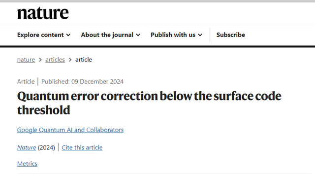 谷歌團(tuán)隊(duì)同一天發(fā)表在《自然》上的一篇論文稱,Willow芯片顯著降低了錯(cuò)誤率。Neven表示,這使得建造更大的量子計(jì)算機(jī)成為可能,谷歌現(xiàn)在可以開(kāi)始權(quán)衡成本。