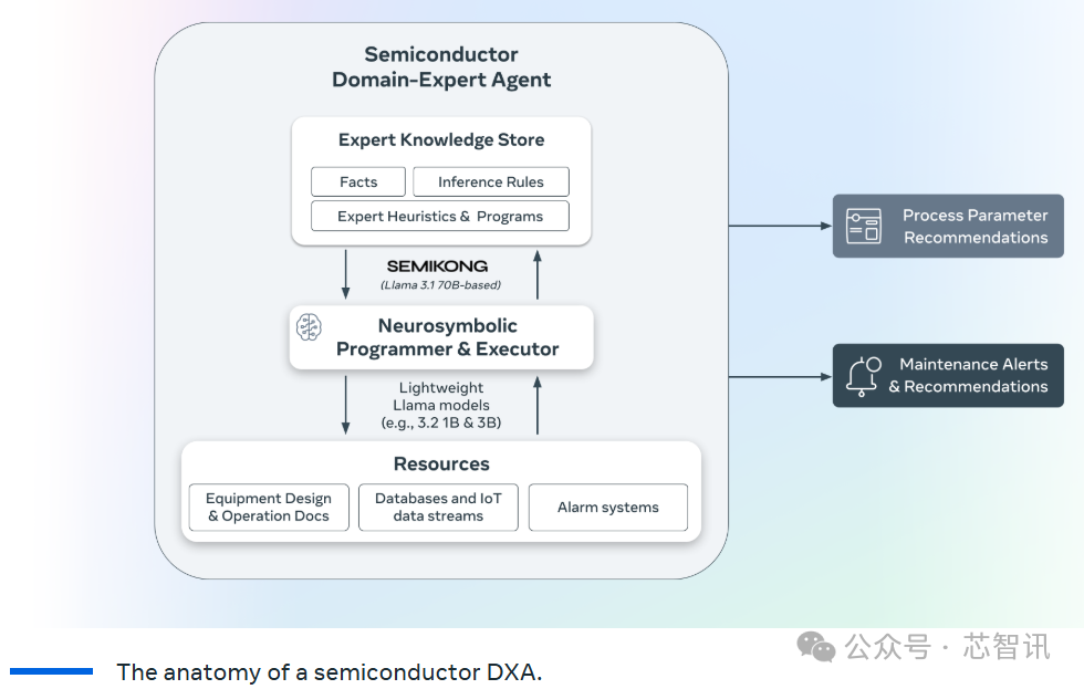 DXA(領(lǐng)域?qū)<掖恚⿲⑤^小的大語(yǔ)言模型與SemiKong 70B的核心功能整合,通過對(duì)客戶公司技術(shù)庫(kù)及專家工程師提供的項(xiàng)目進(jìn)行訓(xùn)練,可以有效地捕獲和構(gòu)建了資深工程師的知識(shí),確保關(guān)鍵專業(yè)知識(shí)得到保留和擴(kuò)展以備將來使用,并且可根據(jù)公司需求進(jìn)行調(diào)整。經(jīng)過訓(xùn)練的DXA能進(jìn)一步整合到核心SemiKong部署中,自動(dòng)執(zhí)行開發(fā)任務(wù),或充當(dāng)工程師與員工間的互動(dòng)界面。
