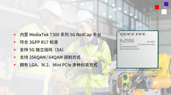 Rx255G系列模組所搭載的MediaTek T300系列5G RedCap平臺,具備MediaTek的5G RedCap UltraSave功能,其功耗比現有的4G IoT調制解調器降低60%,與5G增強移動寬帶(eMBB)調制解調器相比,功耗降低70%,且在啟用R17節能功能時,將額外節省10%的功耗。