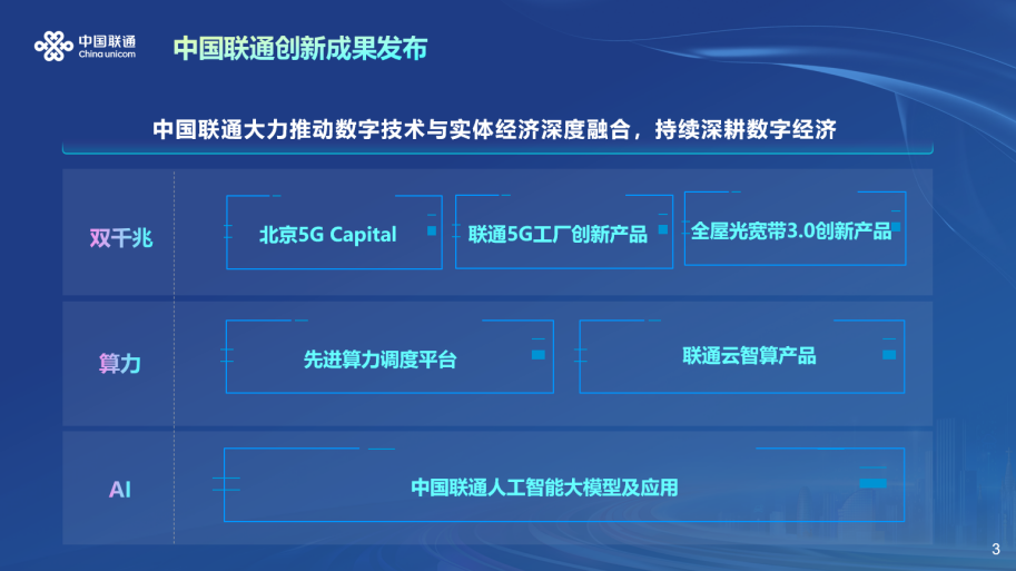 會上,中國聯(lián)通科技創(chuàng)新部總經理馬紅兵發(fā)布了題為“聯(lián)網通信新升級,算網數智新未來”的六大創(chuàng)新成果: