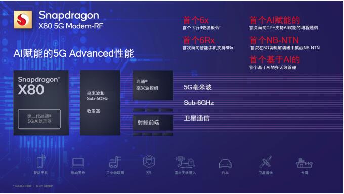 從高通在本次MWC24期間發布的多款重磅新品中不難發現,AI正在通過機器學習的能力,來實現終端通信能力的優化。例如,驍龍X80調制解調器及射頻系統將AI與5G Advanced性能相結合,并通過多項行業首創的領先特性提升5G性能。驍龍X80還支持首個基于AI的多天線管理,首次面向CPE支持AI賦能的增程通信。AI將大大增強5G Advanced用戶的體驗,可以基于情景感知來對服務質量和時延進行優化。
