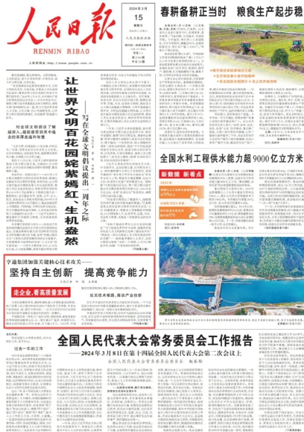 《人民日?qǐng)?bào)》2024年3月15日01版 版面截圖