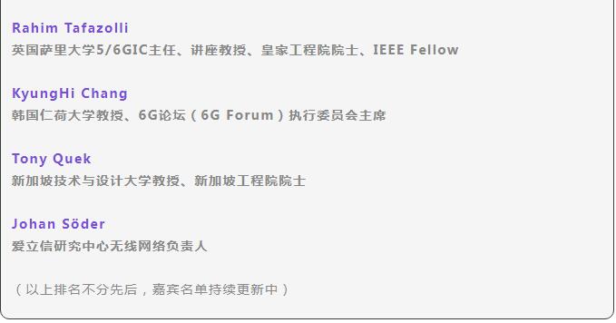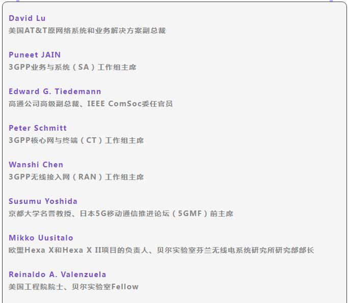 平行論壇圍繞八大前沿方向:通信與AI融合、無線通感融合、空天地一體化、網(wǎng)絡架構及關鍵技術、可信與安全、高頻段無線傳輸與器件、未來業(yè)務與應用猜想、新技術新材料,也將有來自多個國家的嘉賓參加,匯聚全球智慧,交流分享各國各地區(qū)6G發(fā)展路線、6G頻譜規(guī)劃、6G新業(yè)務和應用、關鍵技術與創(chuàng)新方向、標準化節(jié)奏等內(nèi)容。
