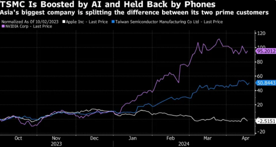 這種前景可能有助于緩解一些投資者的擔(dān)憂(yōu),他們擔(dān)心人工智能的需求不會(huì)持續(xù)下去,或者智能手機(jī)的復(fù)蘇可能需要更長(zhǎng)時(shí)間。臺(tái)積電上周才披露了自2022年以來(lái)最快的銷(xiāo)售增長(zhǎng),這表明對(duì)加速人工智能開(kāi)發(fā)的芯片的需求正開(kāi)始抵消智能手機(jī)市場(chǎng)低迷的影響。蘋(píng)果2023年?duì)I收約占臺(tái)積電營(yíng)收的四分之一,年初iPhone銷(xiāo)量大幅下滑。