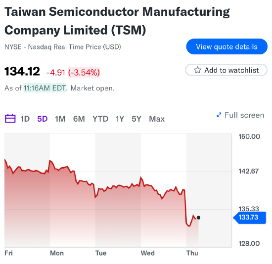 “宏觀經(jīng)濟(jì)和地緣政治的不確定性依然存在,可能會(huì)影響消費(fèi)者信心和終端市場(chǎng)需求,”魏哲家在電話(huà)會(huì)議上對(duì)分析師表示。臺(tái)積電在美國(guó)的存托憑證跌幅高達(dá)6.3%,創(chuàng)一年多來(lái)最大盤(pán)中跌幅。
