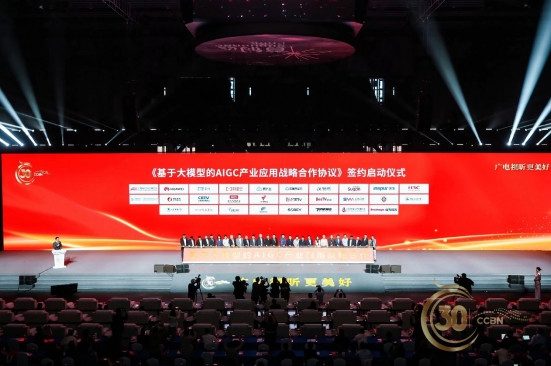 會上舉行了第三屆廣播電視和網絡視聽人工智能應用創新大賽、高新視頻創新應用大賽結果發布儀式,第28屆全國廣播電視技術能手競賽頒獎儀式。啟動《基于大模型的AIGC產業應用戰略合作協議》簽約儀式,廣電行業內二十余家單位共同簽署合作協議,針對廣電視聽大模型的建設部署、應用推廣等事宜廣泛開展合作,助力推動廣電傳媒和互聯網領域新質生產力的快速發展。廣播電視科學研究院分別與四川省廣播電視局、芒果TV、杭州當虹科技股份有限公司簽署產學研用單位戰略合作,建立長期全面戰略合作關系。