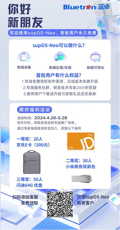“億元補貼,科技普惠”:藍卓推出“億元補貼”計劃,凡是通過推廣官推薦將supOS NEO版升級為supOS Lite版、supOS工廠版等全線版本,推廣官與最終用戶雙方均可獲得工業APP、優惠券、看板模版等升級補貼,總計價值超過1億,詳細內容可以在藍卓官網查看。