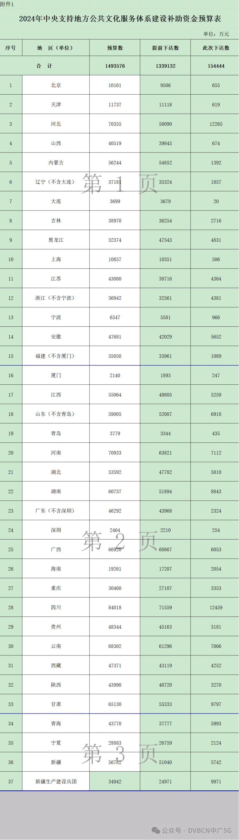 DVBCN注意到,5月7日財政部已公示了此前下發的《關于下達2024年中央支持地方公共文化服務體系建設補助資金預算的通知》